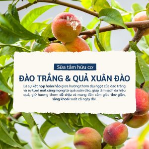 Đào trắng hữu cơ và xuân đào hữu cơ được thu hoạch khi chín mọng dưới ánh nắng chan hòa của miền Nam nước Pháp, lưu giữ trọn vẹn hương thơm tươi mát và dưỡng chất thiên nhiên. Sự kết hợp đầy cảm hứng này mang đến cảm giác làm sạch dịu nhẹ, dưỡng da mềm mại và để lại làn hương ngọt lành như mùa hè Địa Trung Hải.